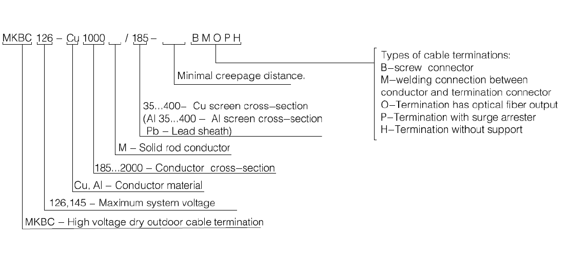 Dry type termination MKBC 126 / MKBC 145 uses for the connection of HV cable lines with overhead lines of substation equipment. Dry type termination are suitable for outdoor and indoor installation with HV XLPE cables 64/110 kV, 76/132 kV with the conductor cross-section up to 2000 mm2.